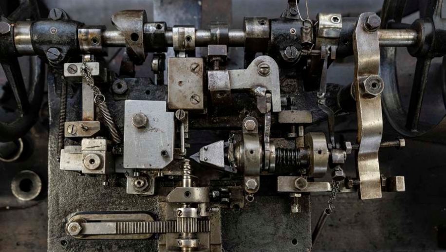 The process begins with a wire that is passed through one of these historical machines.